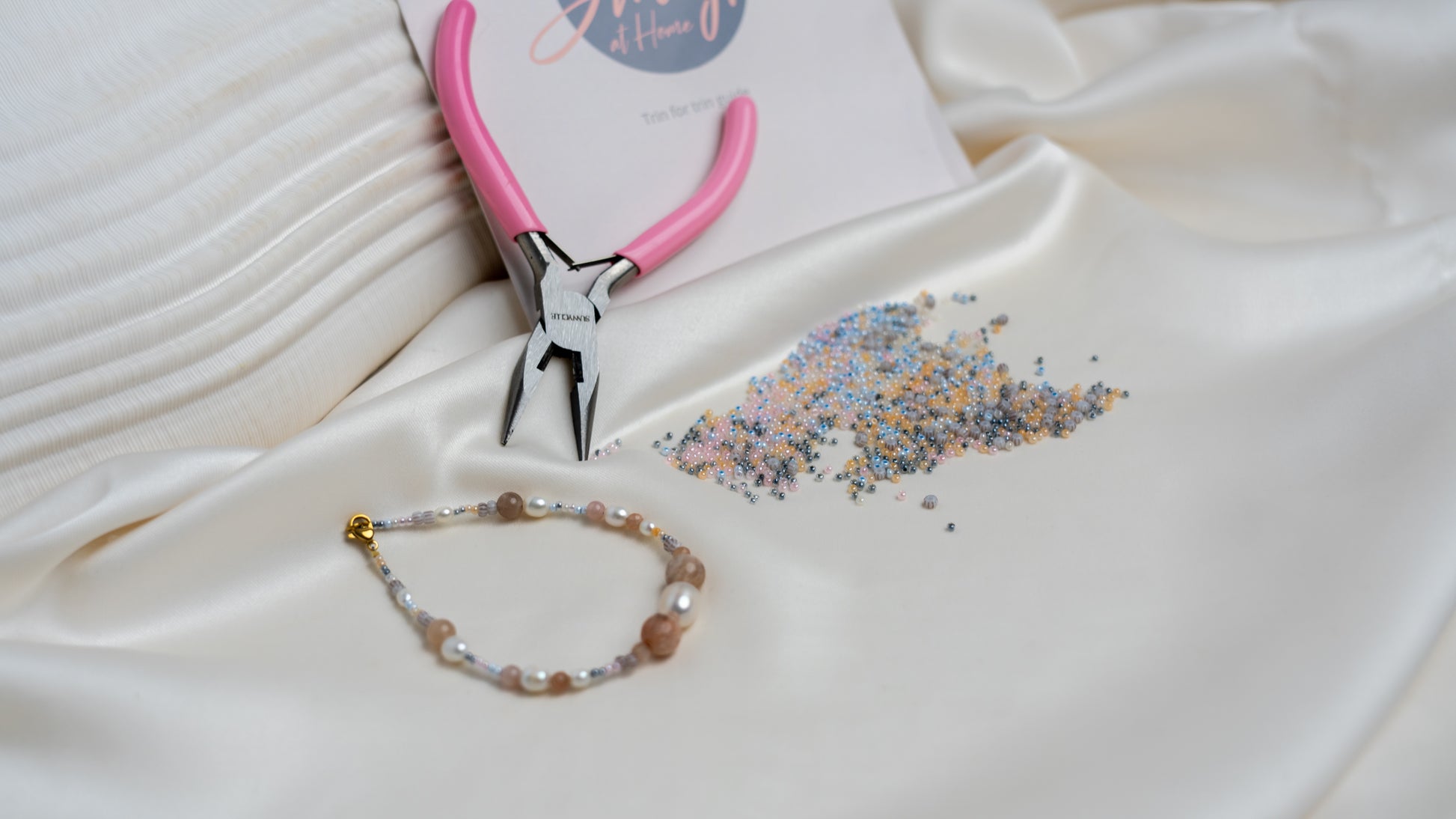 Perfekt til alle – uanset om du er nybegynder eller har erfaring med at lave smykker. Det er den perfekte måde at tilbringe hyggelige timer derhjemme, alene eller sammen med venner eller familie. Det er nemt at komme i gang, og du får et færdigt smykke med det samme – et smykke du selv har lavet!